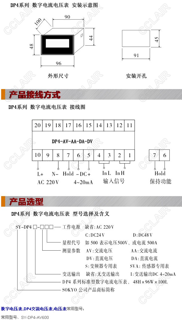 SY-DP4-AV500,SY-DP4-AV500C,DP4-AV500,DP4-AV500C,DP4-AV500D,DP4交流電壓表