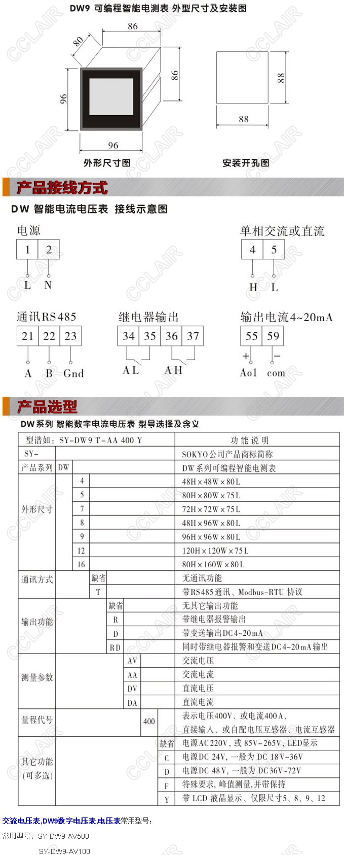 SY-DW9-AV400,SY-DW9-AV400C,SY-DW9-AV400D,DW9-AV400,DW9-AV400C,DW9數(shù)字電壓表
