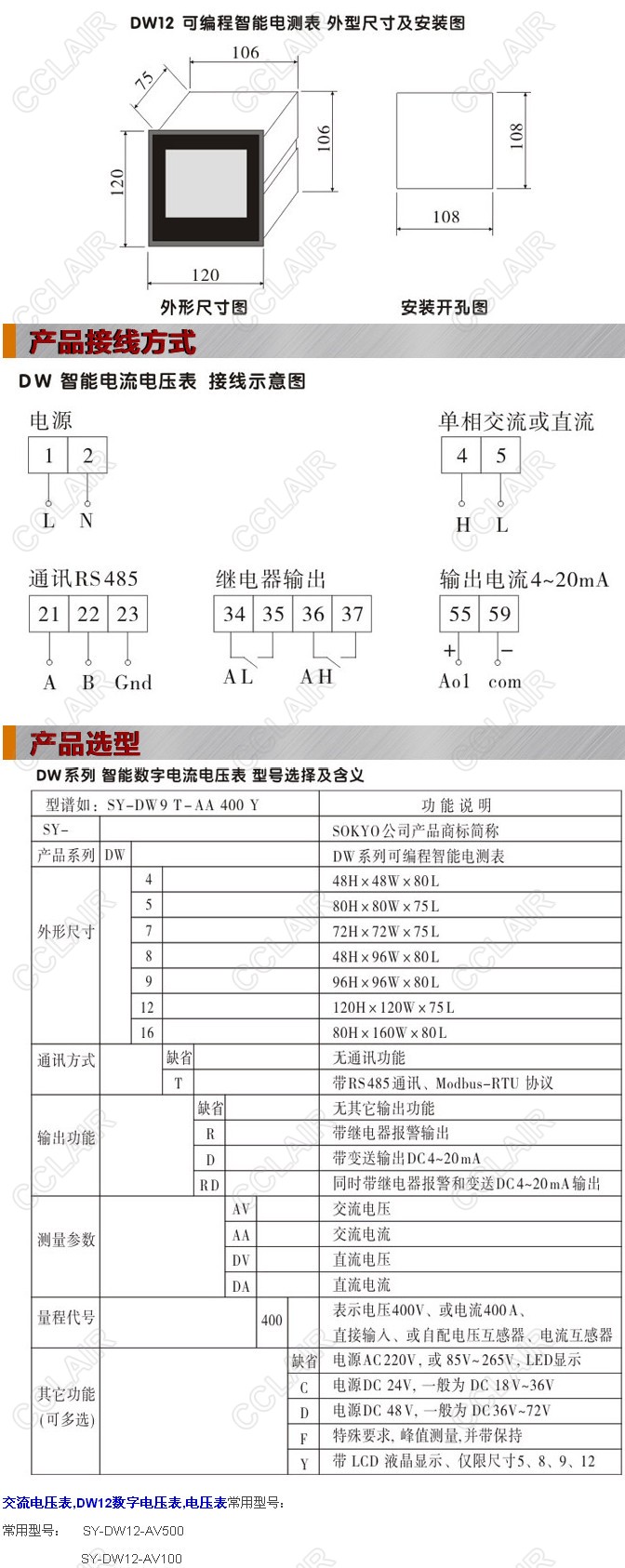 SY-DW12-AV400,SY-DW12-AV400C,SY-DW12-AV400D,DW12-AV400,DW12-AV400C,DW12數(shù)字電壓表