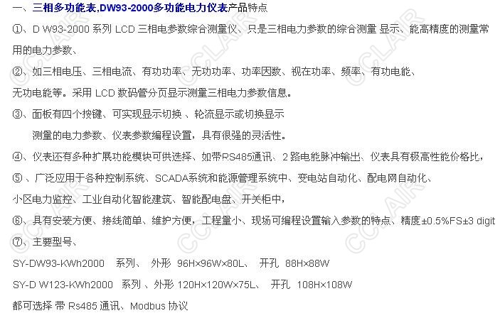 SY-DW53-KWh2000,SY-DW73-KWh2000,DW53-KWh2000,DW73-KWh2000,DW93-2000多功能電力儀表