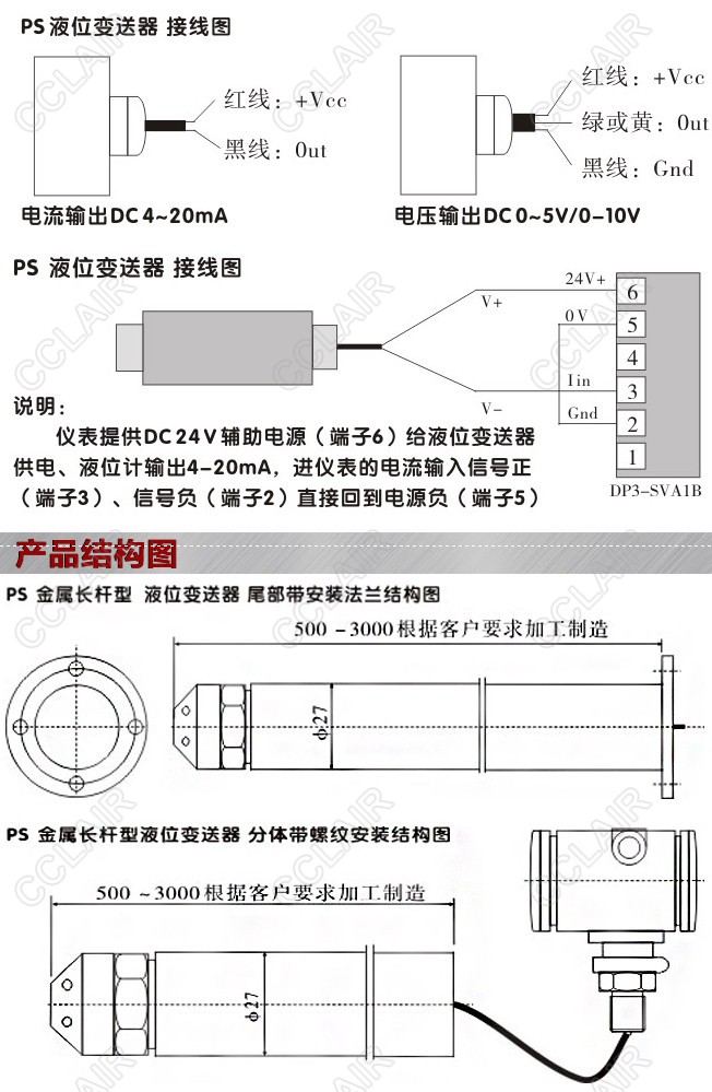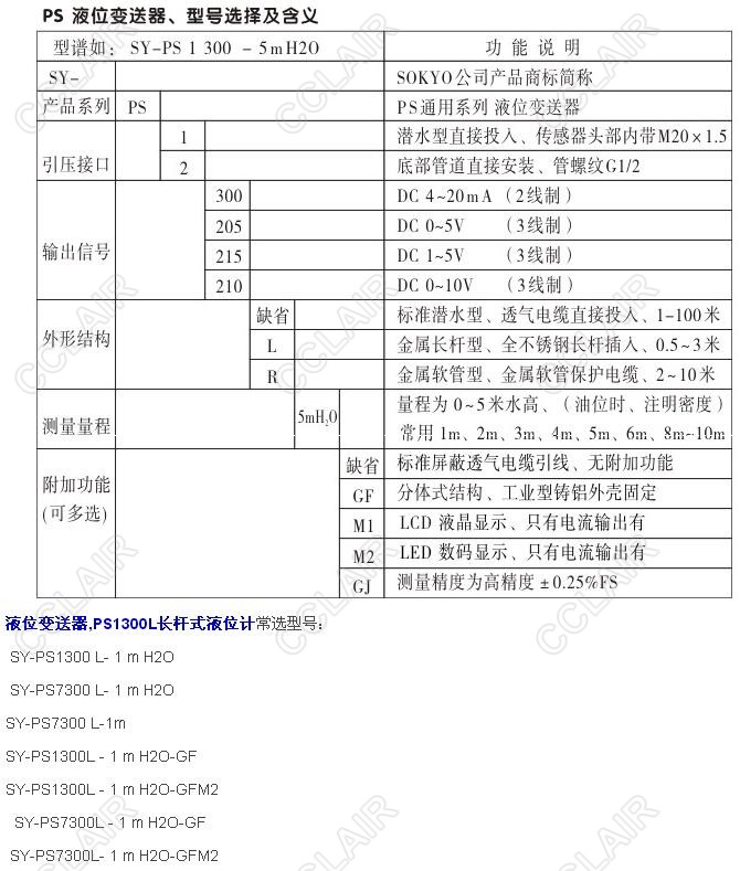 SY-PS1300L-1mH2O,SY-PS7300L-1mH2O,PS1300L-1mH2O,PS7300L-1mH2O,PS1300L長桿式液位計