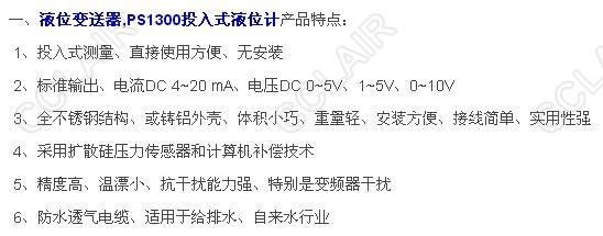 SY-PS1300-5mHO,SY-PS1300-5mHO-GF,PS1300-5mHO-GFM2,PS1300投入式液位計(jì)