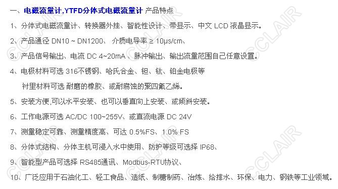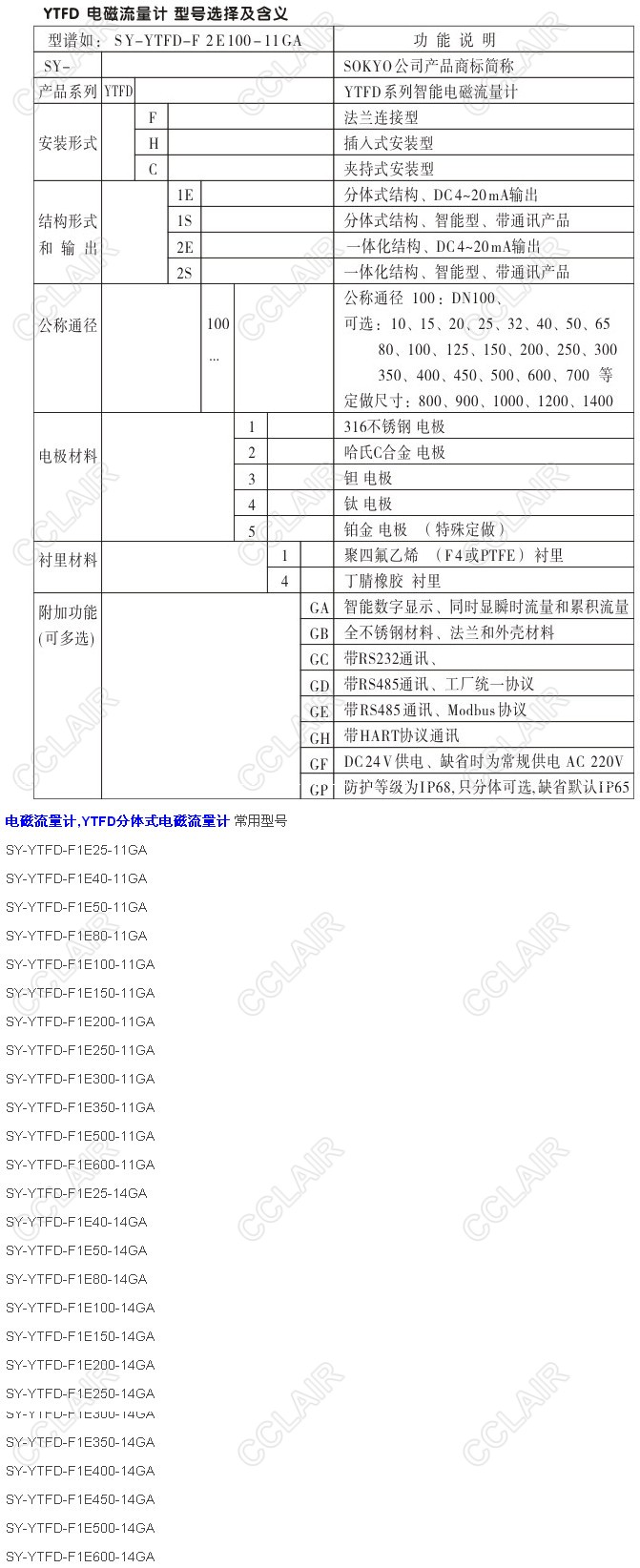 SY-YTFD-F1E25-11GA,SY-YTFD-F1E40-11GA,SY-YTFD-F1E50-11GA,YTFD分體式電磁流量計(jì)