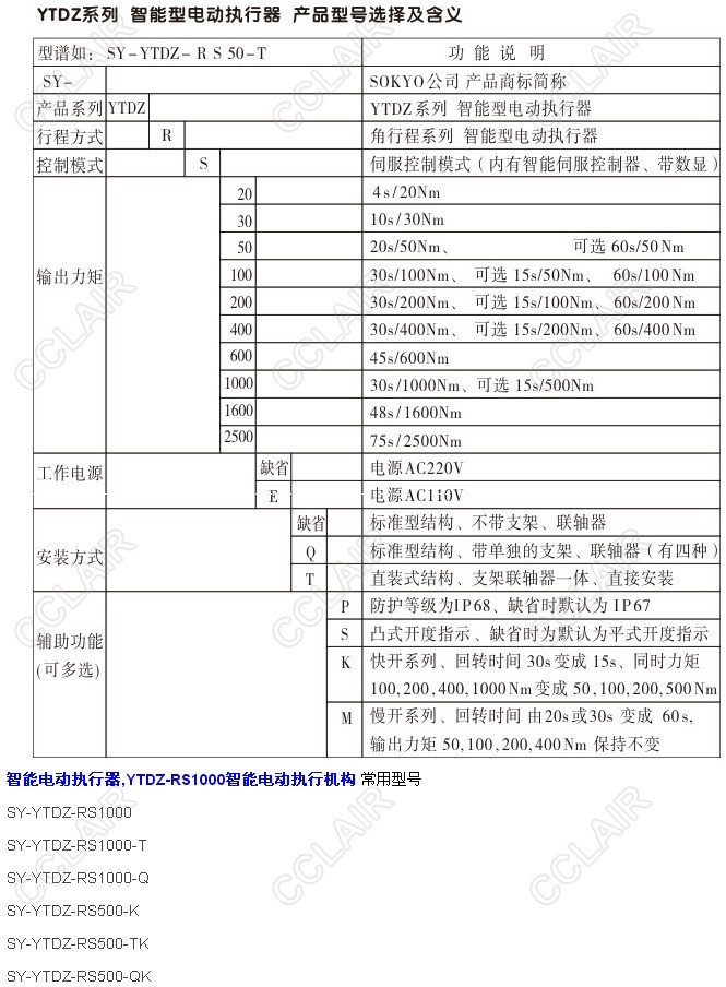 SY-YTDZ-RS1000,SY-YTDZ-RS1000-T,SY-YTDZ-RS1000-Q,YTDZ-RS1000智能電動執(zhí)行機構(gòu)