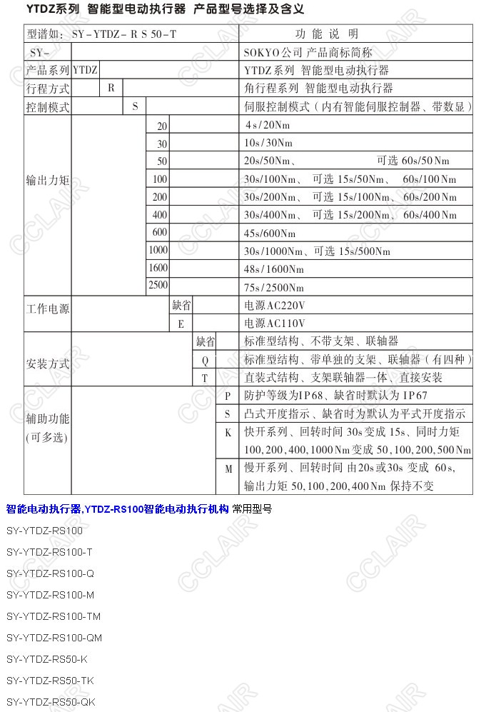 SY-YTDZ-RS100,SY-YTDZ-RS100-T,SY-YTDZ-RS100-Q,YTDZ-RS100智能電動執(zhí)行機(jī)構(gòu)