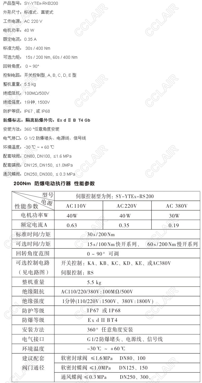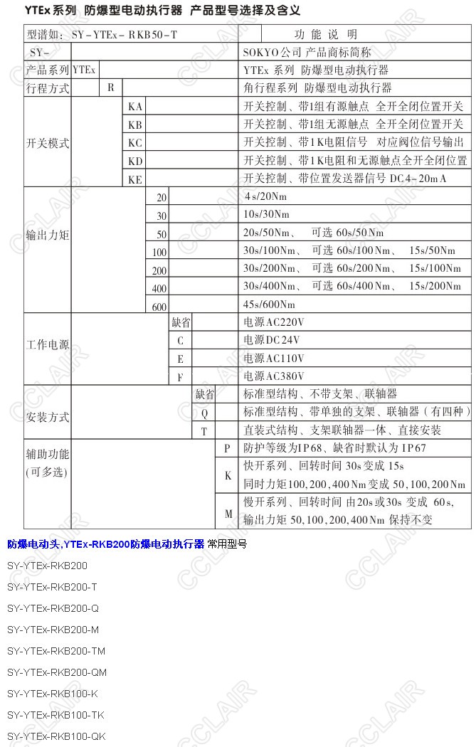 SY-YTEX-RKB200,SY-YTEX-RKB200-T,SY-YTEX-RKB200-Q,YTEX-RKB200防爆電動(dòng)執(zhí)行器