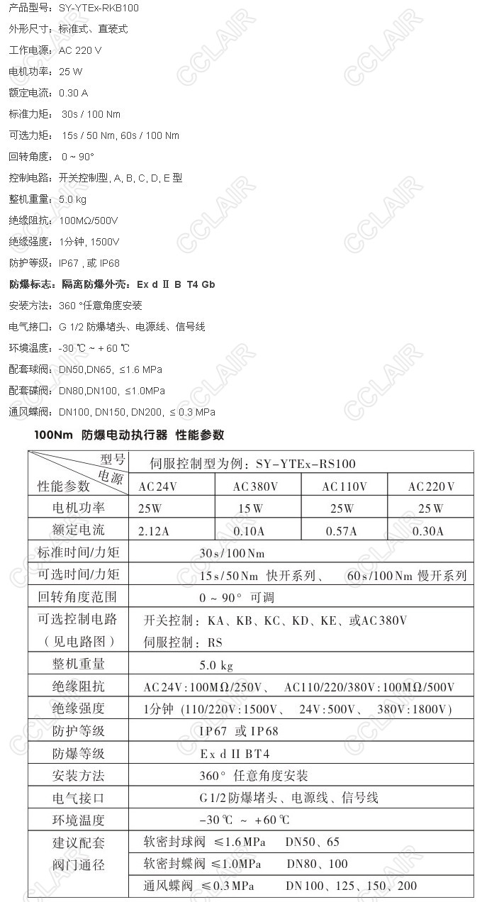 SY-YTEX-RKB100,SY-YTEX-RKB100-T,SY-YTEX-RKB100-Q,YTEX-RKB100防爆電動執(zhí)行器