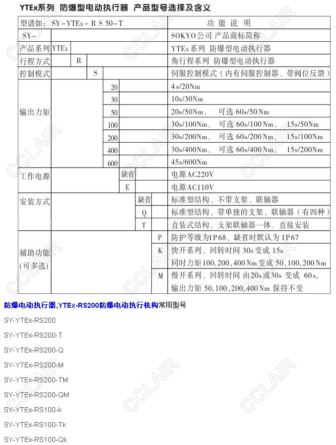 SY-YTEX-RS200,SY-YTEX-RS200-T,SY-YTEX-RS200-Q,YTEX-RS200防爆電動執(zhí)行機構(gòu)
