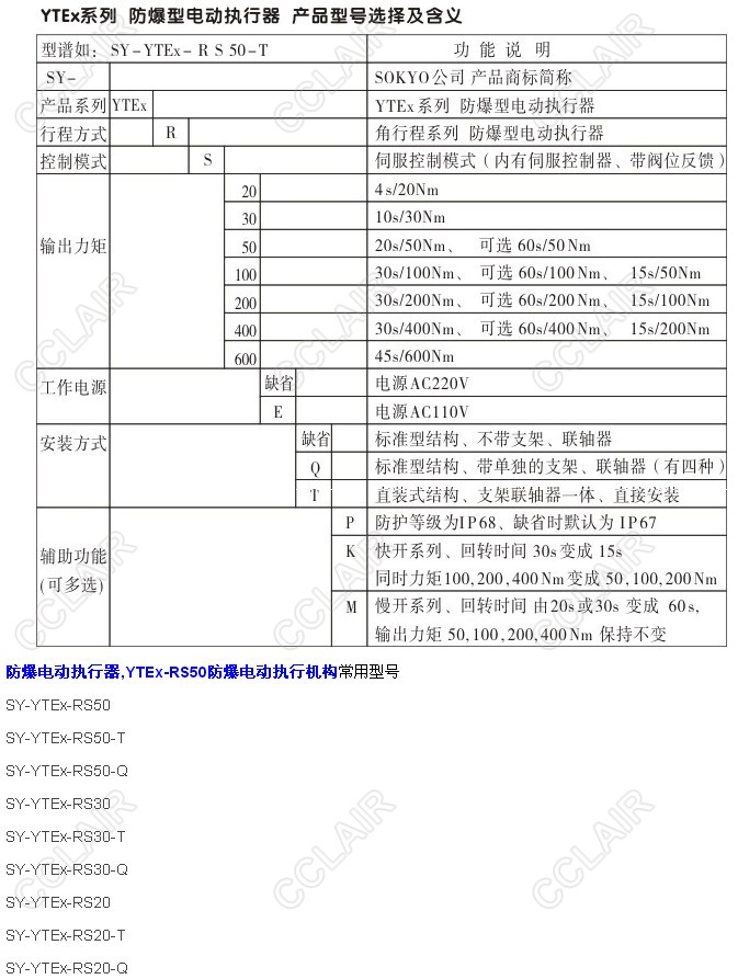 SY-YTEX-RS50,SY-YTEX-RS50-T,SY-YTEX-RS50-Q,YTEX-RS50防爆電動執(zhí)行機構(gòu)