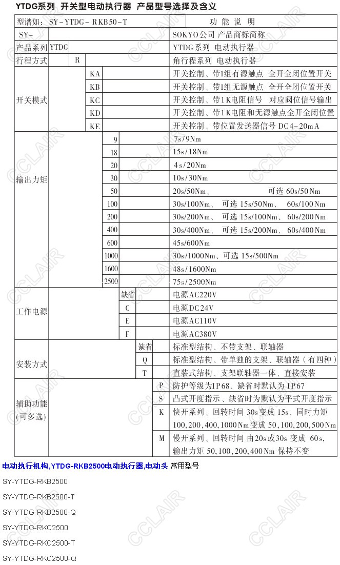 SY-YTDG-RKB2500,SY-YTDG-RKB2500-T,SY-YTDG-RKB2500-Q,YTDG-RKB2500電動執(zhí)行器電動頭