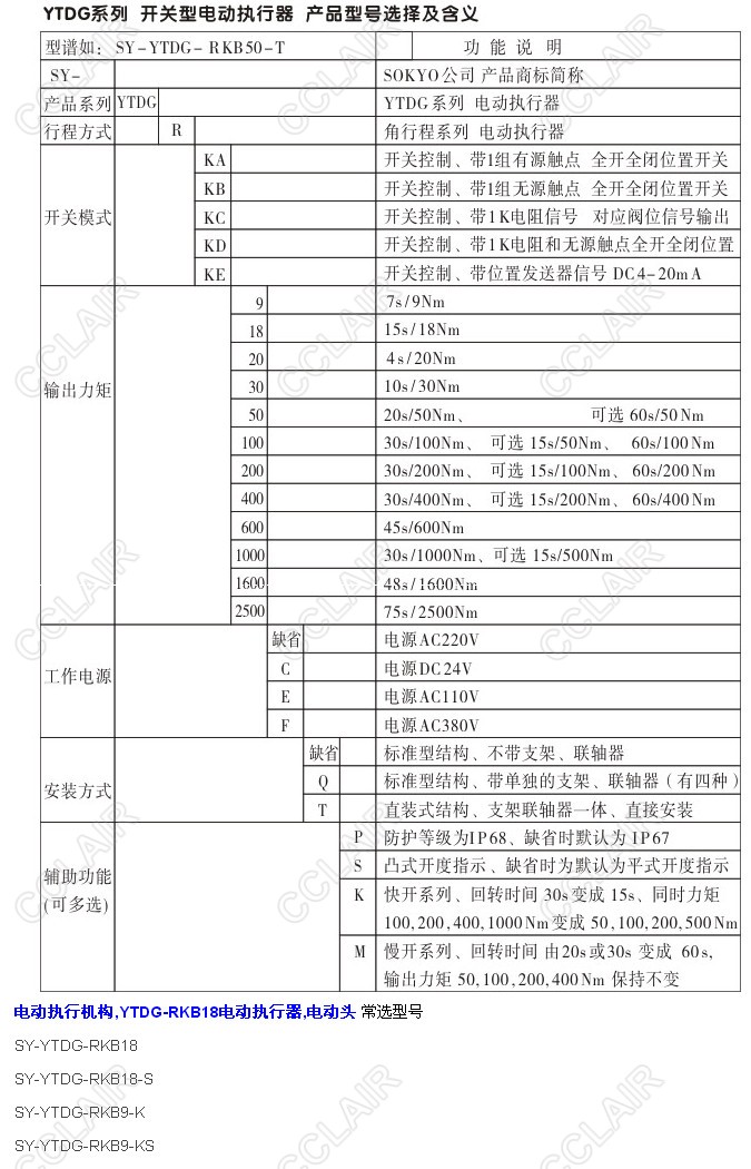 SY-YTDG-RKB18,SY-YTDG-RKB18-S,SY-YTDG-RKB9-K,SY-YTDG-RKB9-KS,YTDG-RKB18電動執(zhí)行器電動頭