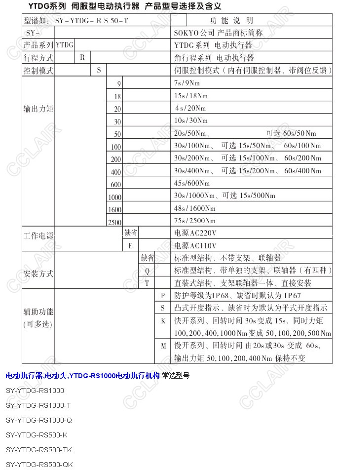 SY-YTDG-RS1000,SY-YTDG-RS1000-T,SY-YTDG-RS1000-Q,YTDG-RS1000電動(dòng)執(zhí)行機(jī)構(gòu)