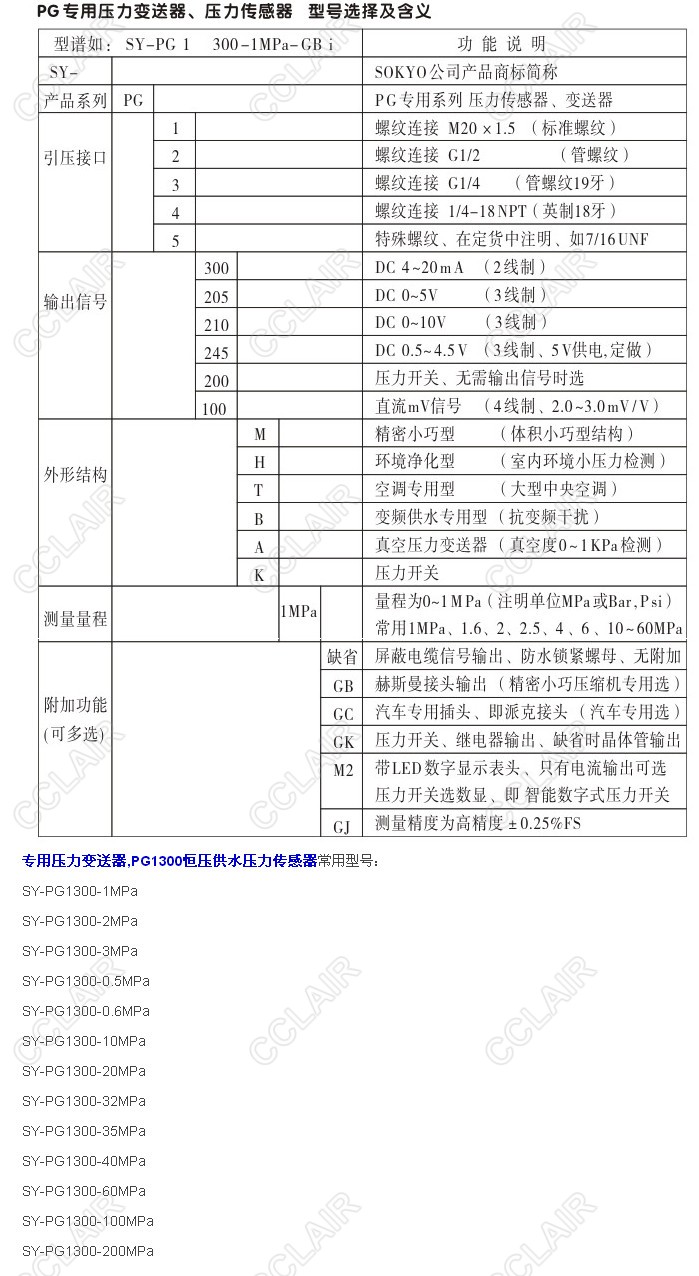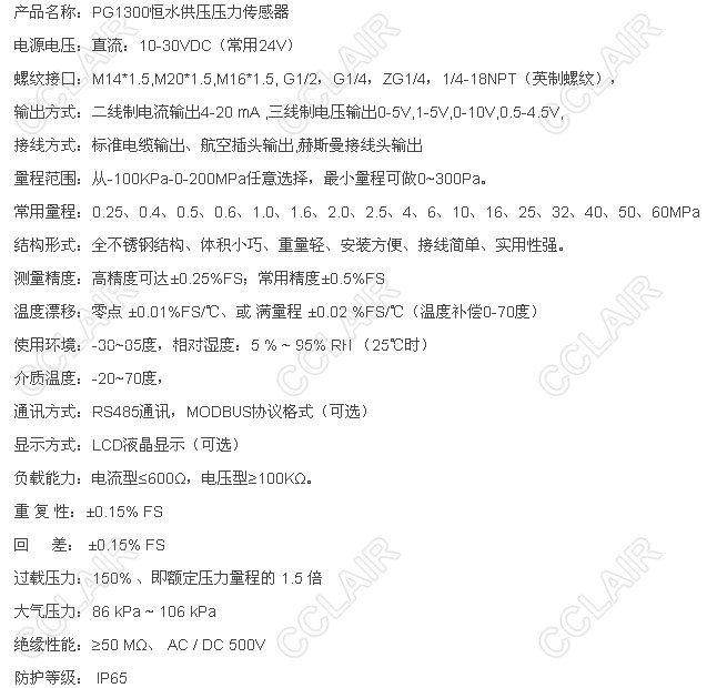 SY-PG1300-1MPa,SY-PG1300-2MPa,SY-PG1300-3MPa,PG1300恒壓供水壓力傳感器