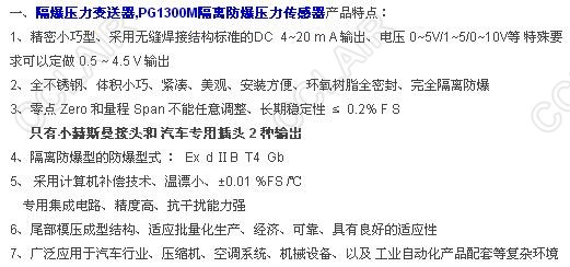 SY-PG1300Md-0.25MPa,SY-PG1300Md-0.4MPa,PG1300M隔離防爆壓力傳感器
