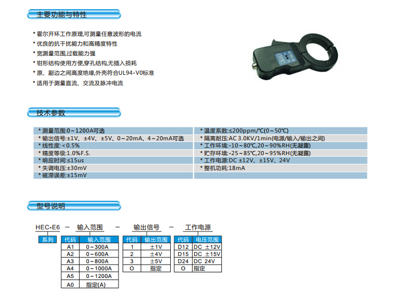 HEC-E6,HEC-E6-A1,HEC-E6-A2,HEC-E6-A3,HEC-E6-A4,HEC-E6-A5,HEC-E6-A0鉗形電流傳感器