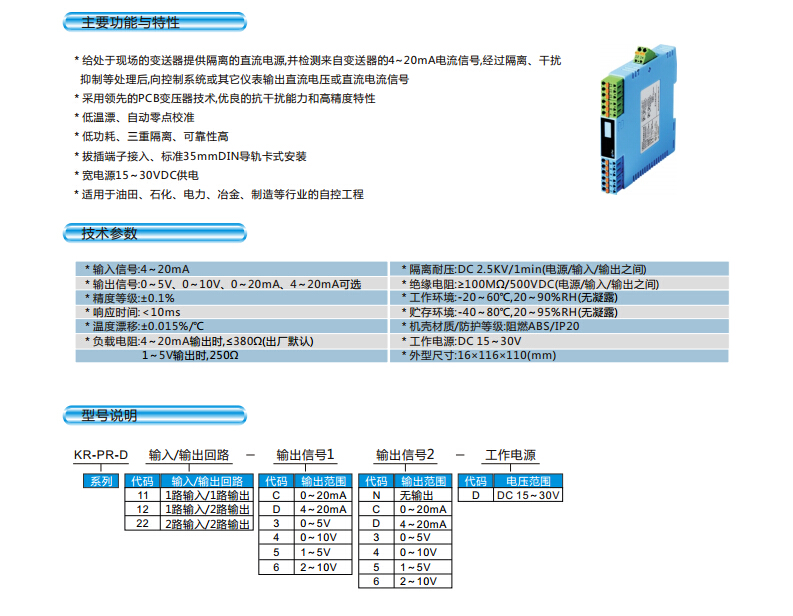 KR-PR-D, KR-PR-D11,KR-PR-D12,KR-PR-D22,信號隔離配電器