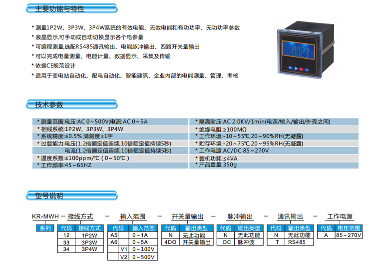 KR-MWH, KR-MWH-12,KR-MWH-33,KR-MWH-34單相/三相電能表