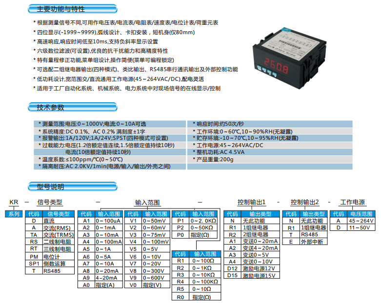 KR,KR-D,KR-A,KR-TA,KR-RS,KR-RT,KR-PM,KR-SP1,KR-T,四位智能顯示控制表