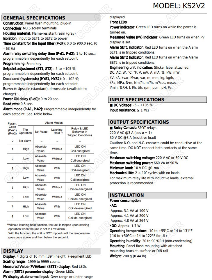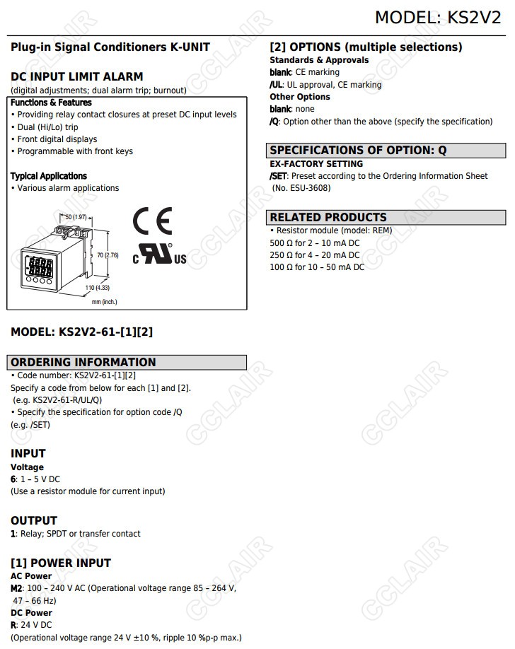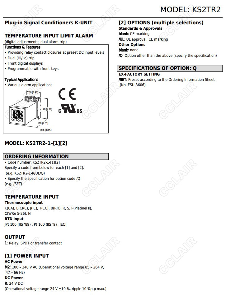 KS2V/KS2TR,直流電壓/溫度信號(hào)報(bào)警器
