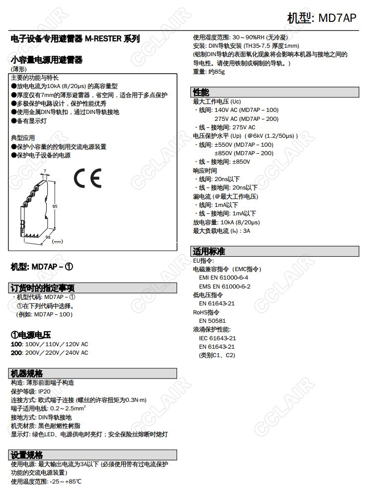 MD7AP,MD7AP-100,MD7AP-200,并聯(lián)電源用 超薄型避雷器