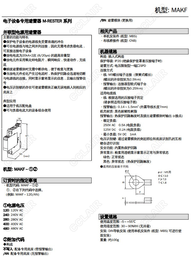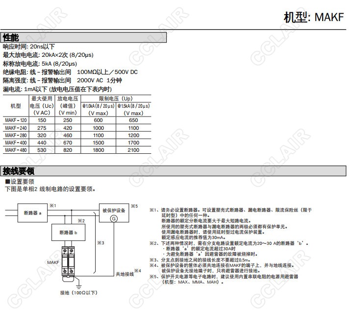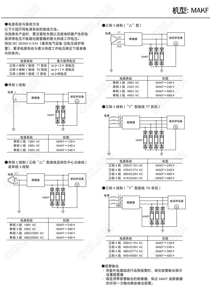 MAKF-120/AN,MAKF-240/AN,MAKF-280/AN,MAKF-400/AN,MAKF-480/AN,并聯(lián)電源用避雷器