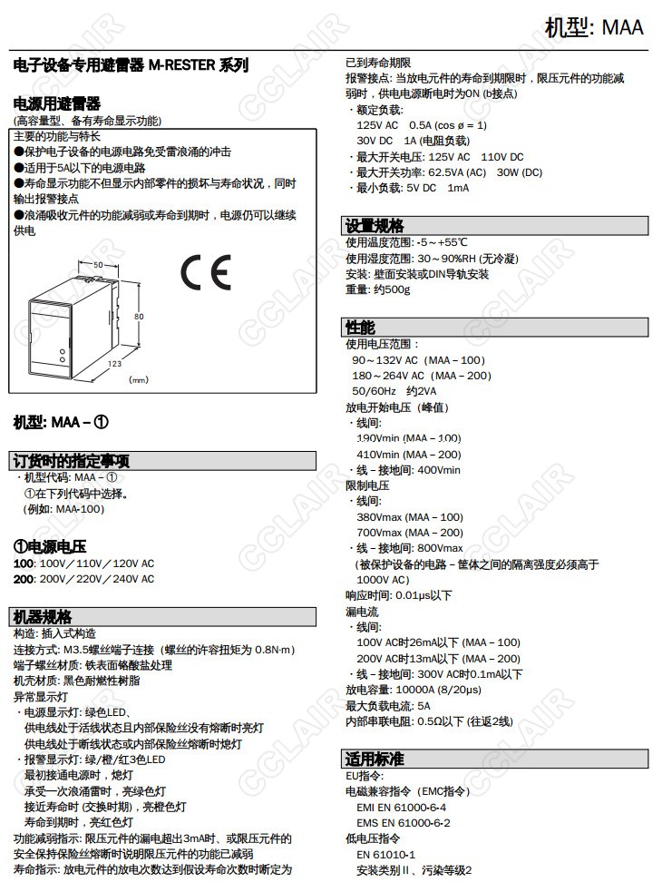 MAA-100/MAA-200,最大負(fù)載5A 壽命顯示功能避雷器