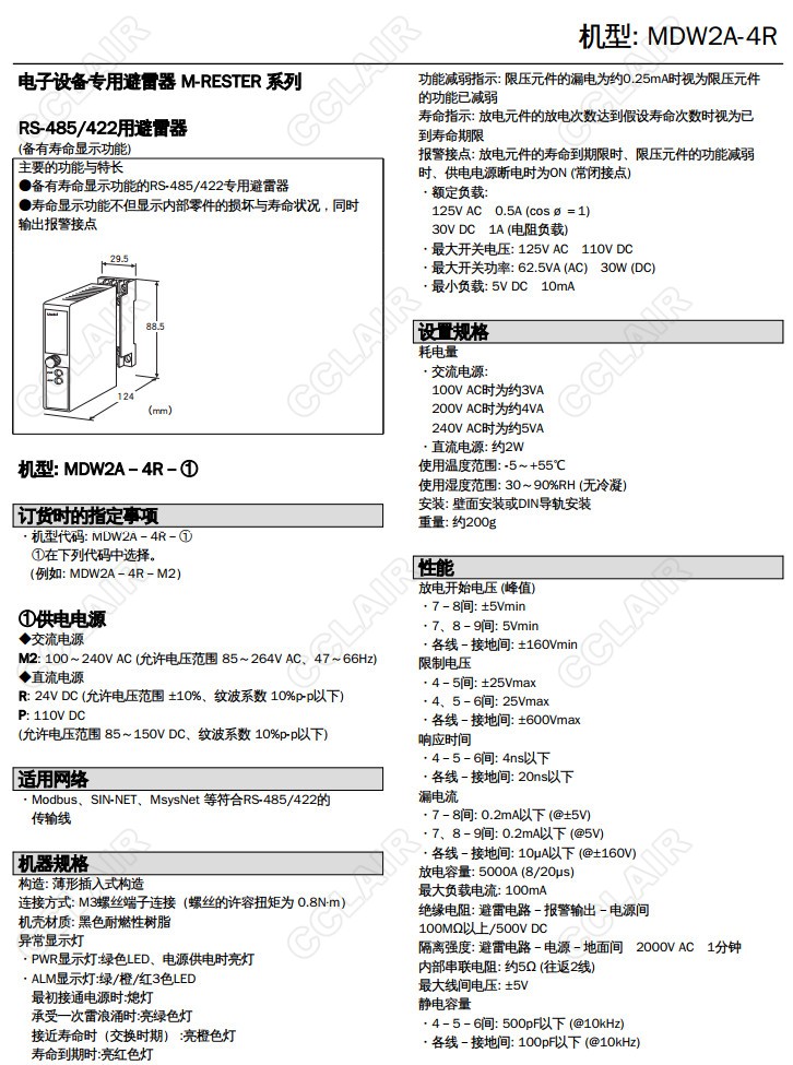 MDW2A-4R, MDW2A-4R-M2,MDW2A-4R-R,MDW2A-4R,MDW2A-4R-P, RS-485/RS-422用插入型壽命顯示功能避雷器