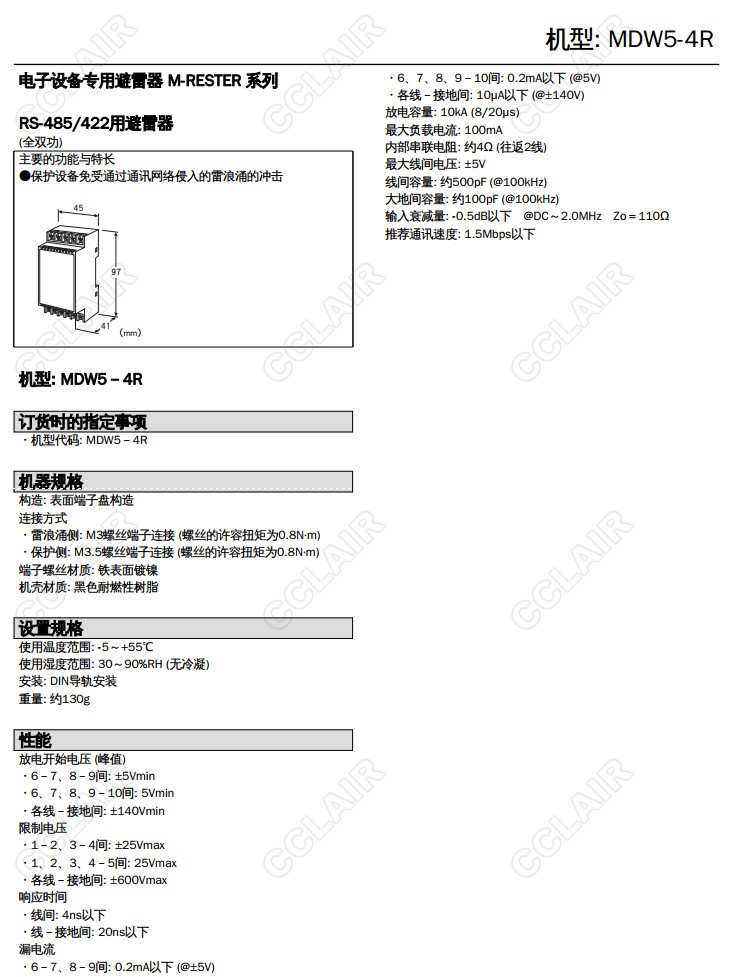 MDW5-4R, RS-485/RS-422用 全雙工避雷器