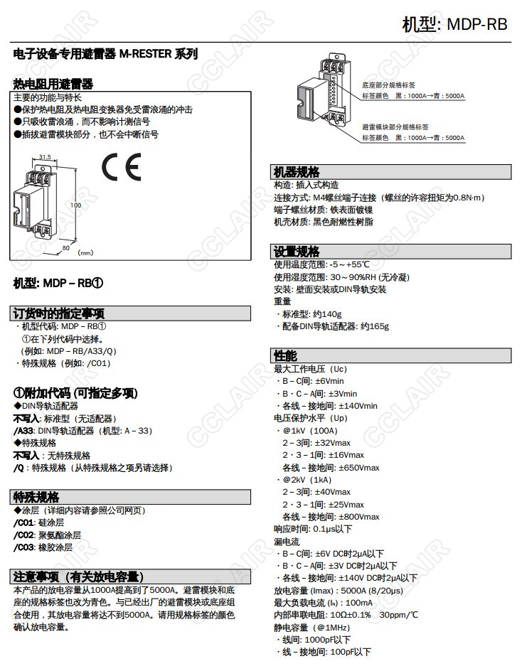 MDP-RB,MDP-RB/A33/C01,MDP-RB/A33,MDP-RB/Q,熱電阻用 插入型避雷器