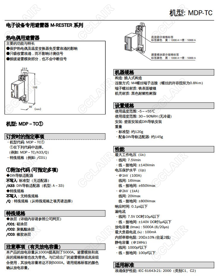 MDP-TC,MDP-TC/A33/Q,MDP-TC/Q熱電偶用 插入型避雷器