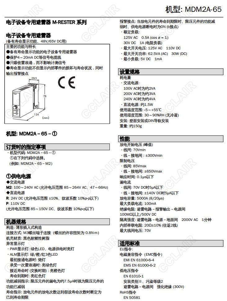 MDM2A-24/MDM2A-65,MDM2A-24-M2,MDM2A-24-R,4-20mA直流、脈沖信號(hào)用 插入型 壽命顯示功能避雷器