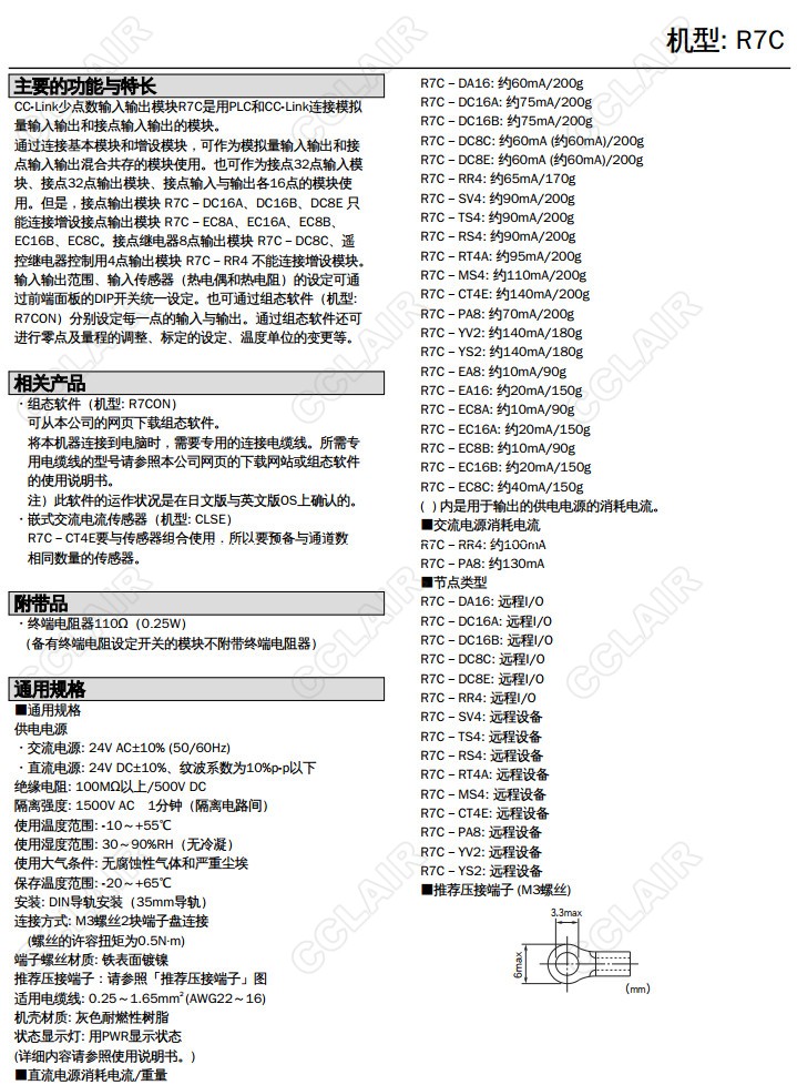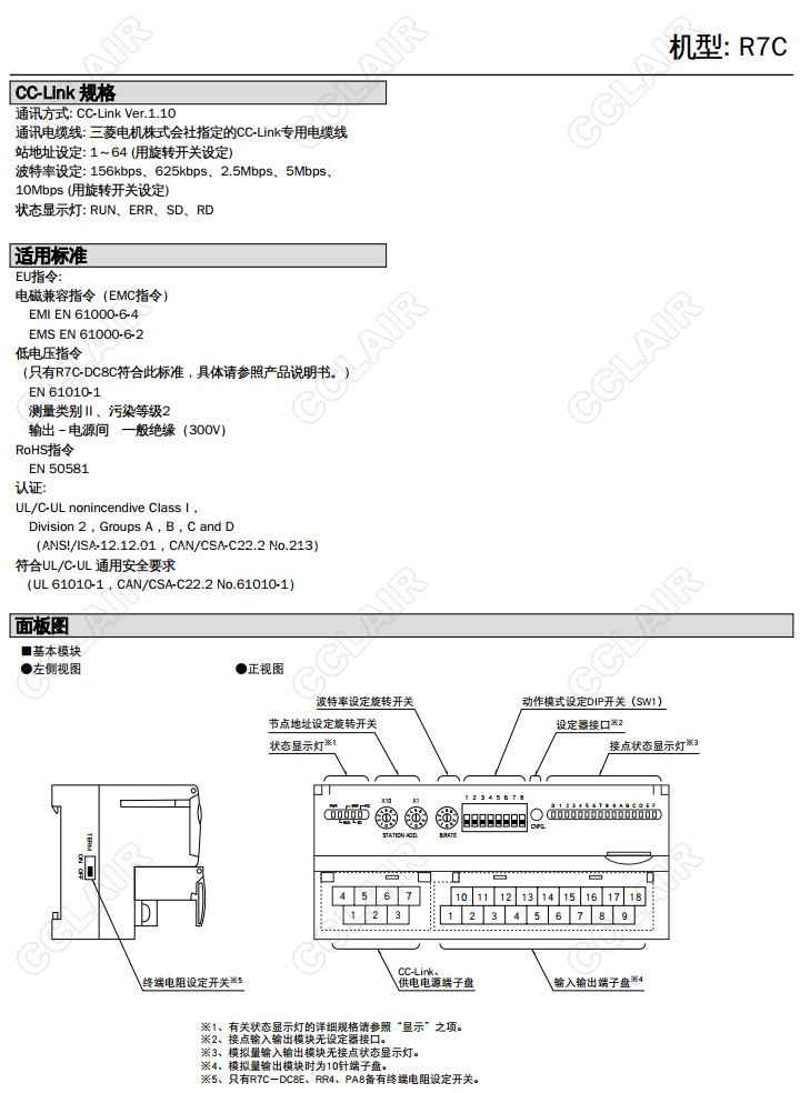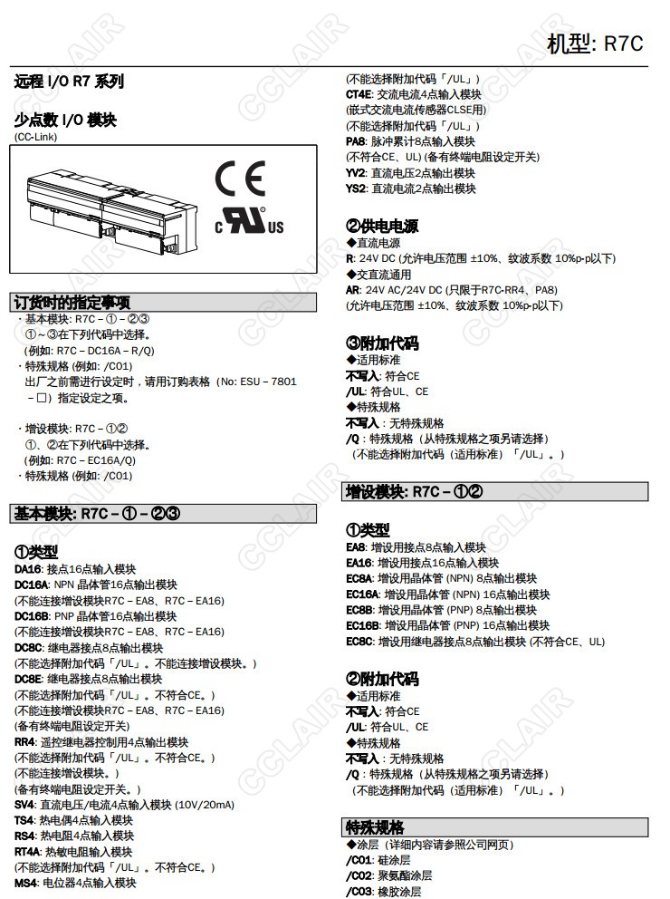 R7C,R7C-DA16 接點16點輸入模塊,R7C-DC16A 接點(NPN)16點輸出模塊(CC-Link通訊類型),