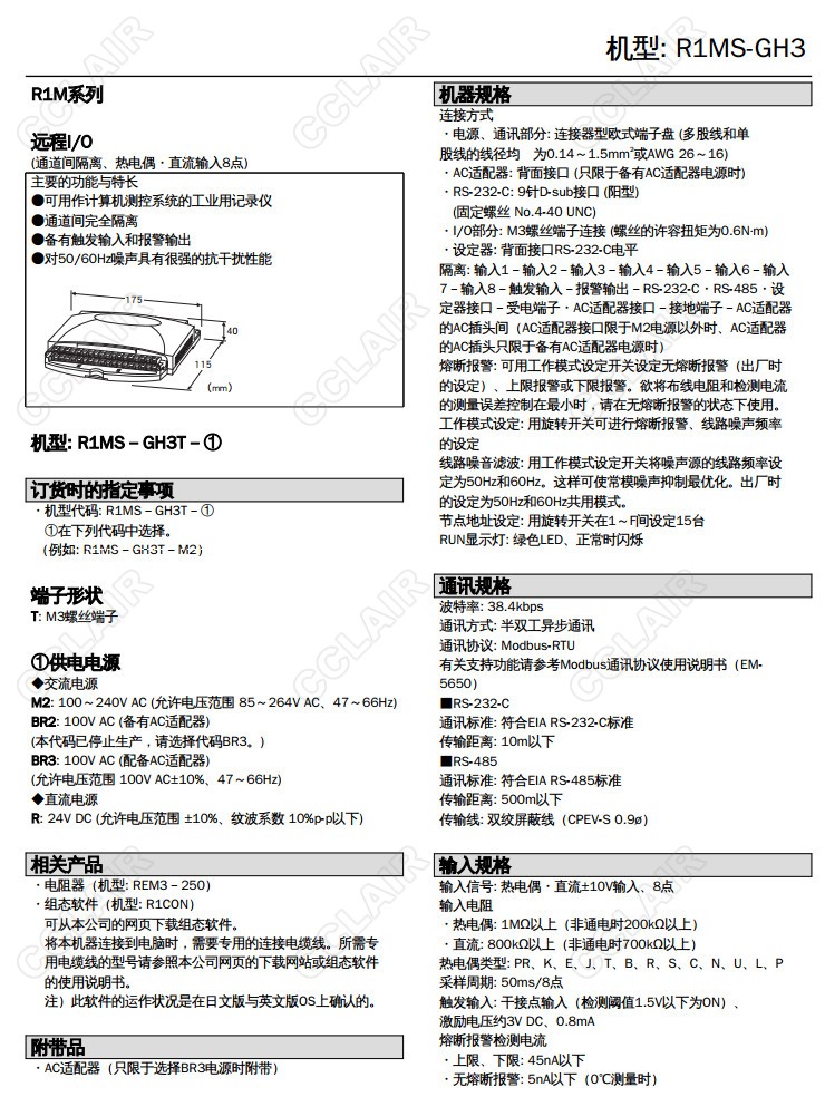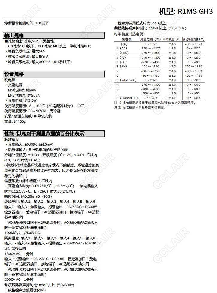 R1MS-GH3,R1MS-GH3T-M2,R1MS-GH3T-BR3,R1MS-GH3T-R,通道相互間完全隔離直流直 流/熱電偶 8點(diǎn)輸入模塊