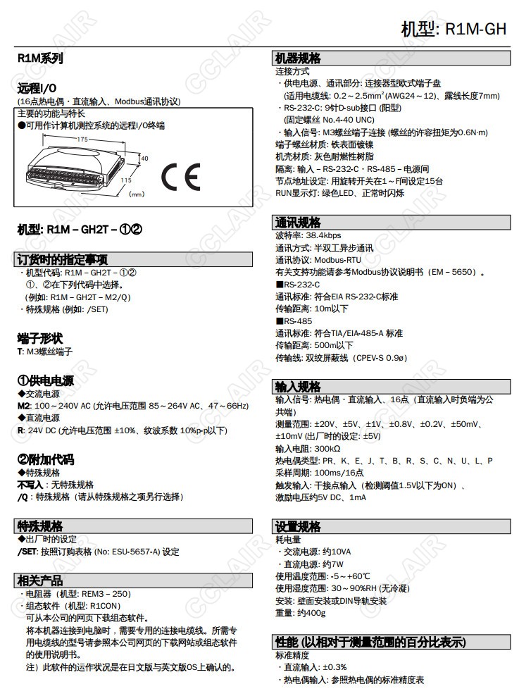 R1M-GH,R1M-GH2T-M2/Q,R1M-GH2T-R/Q直流/熱電偶 16點輸入模塊
