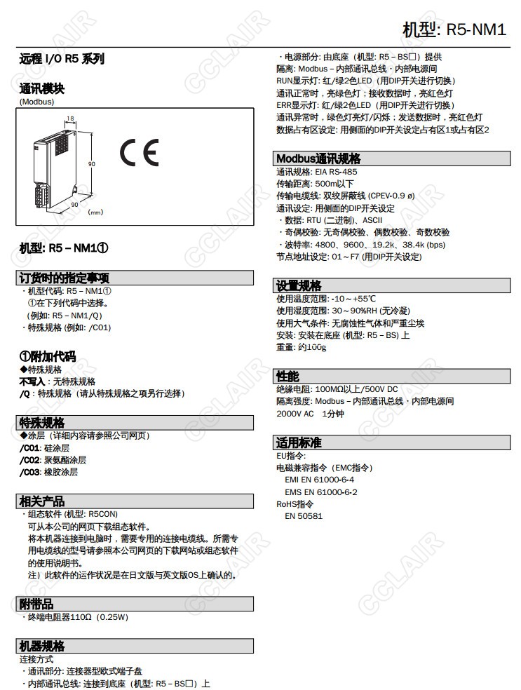 R5-NM1,R5-NM1/Q,R5-NM1/C01,R5-NM1/C02,R5-NM1/C03,Modbus通訊模塊
