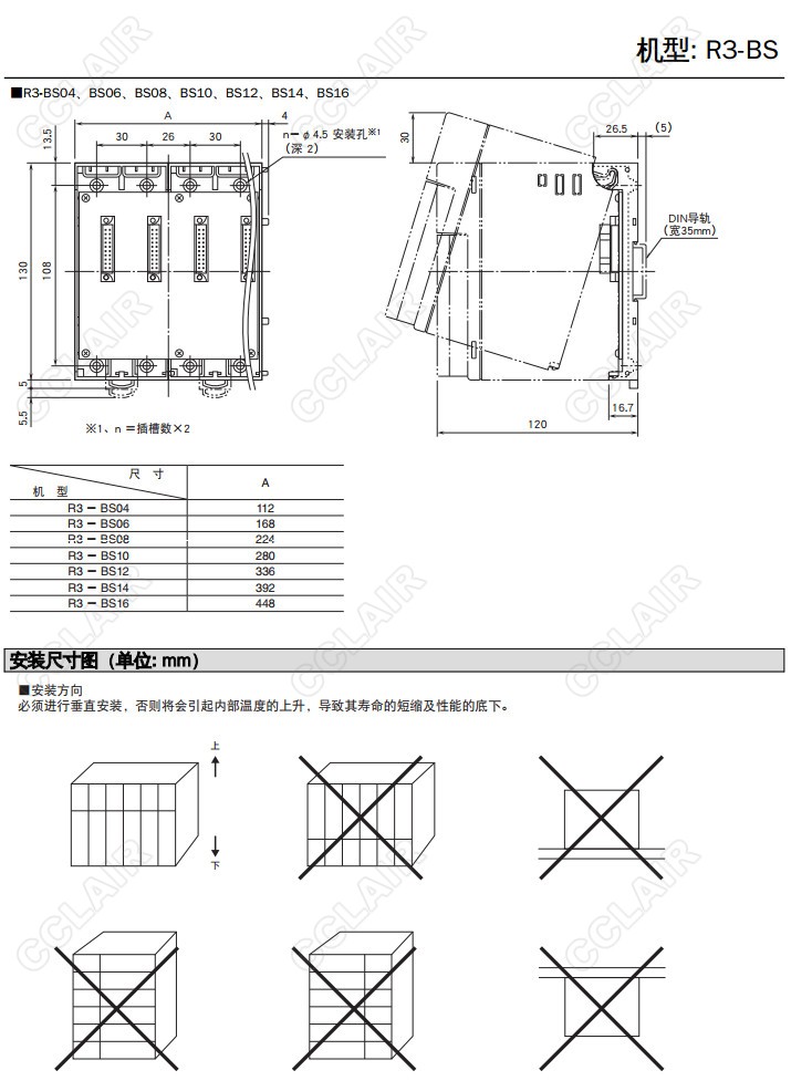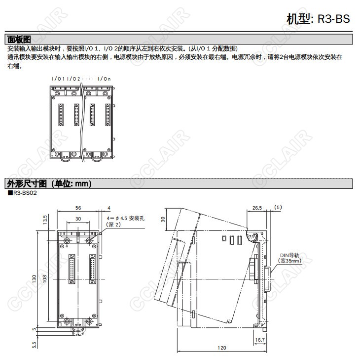 R3-BS,R3-BS10/CE/Q,R3-BS02,R3-BS04,R3-BS06,R3-BS08,R3-BS10,R3-BS12,2~16個(gè)模塊用底板R3-BS14,R3-BS16,