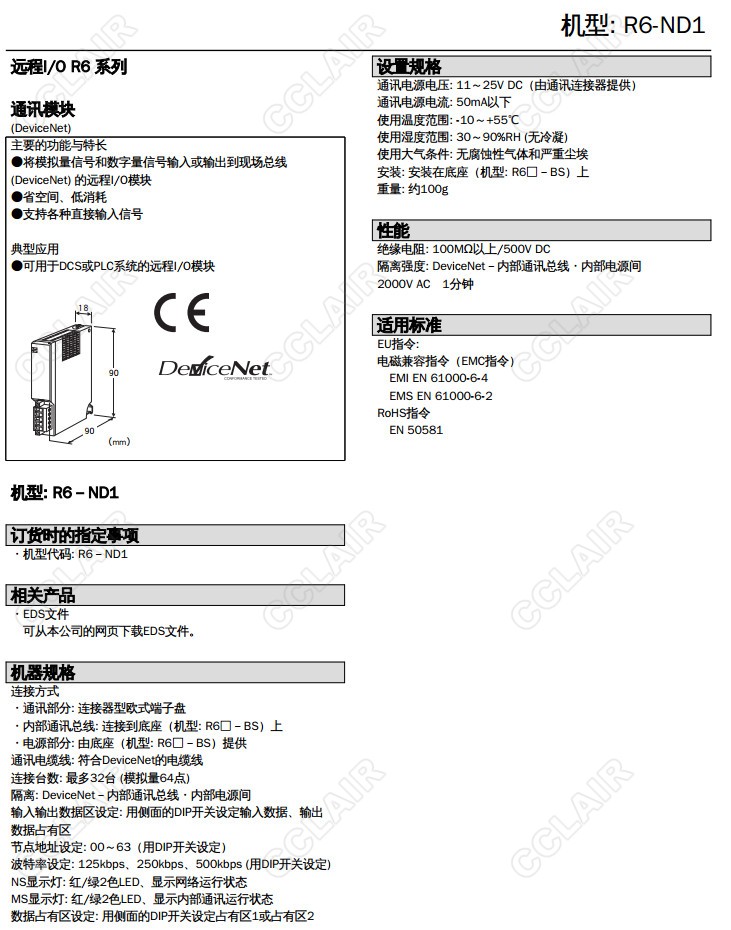 R6-ND1 DeviceNet通訊模塊模擬量和開關(guān)量I/O信號自由組合