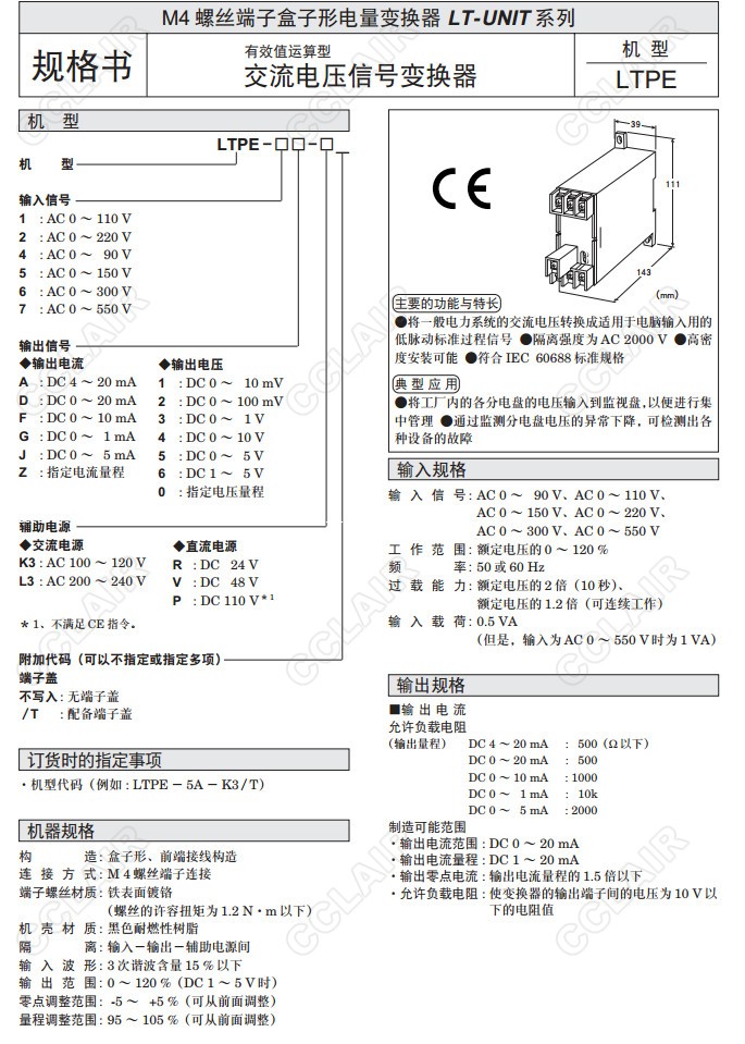 LTPE,LTPE-5A-K3/T,LTPE-1,LTPE-2,LTPE-4,LTPE-5,LTPE-6,LTPE-7,交流電壓信號(hào)變換器(有效值運(yùn)算型)