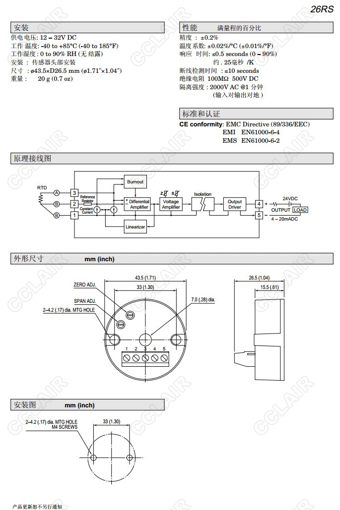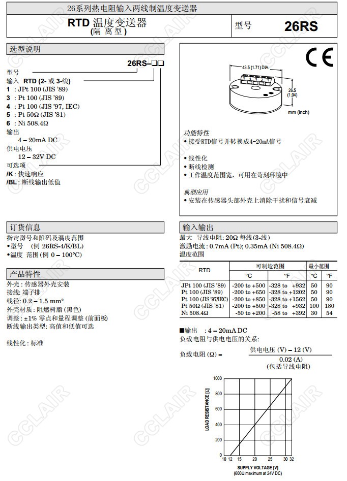 26RS,26RS-4/K/BL,26RS-1,26RS-3.26RS-4,26RS-5,26RS-6,熱電阻信號變換器(隔離)