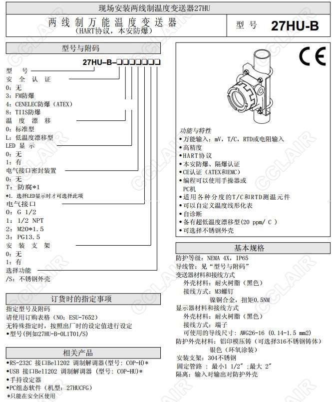 27HU-B,27HU-B-7652,CELENEC隔爆型防爆認(rèn)證 接線盒內(nèi)安裝型萬能輸入信號(hào)變換器27HU-B-0,27HU-B-3,27HU-B-4,27HU-B-8,