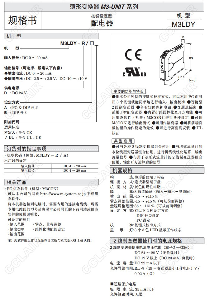 M3LDY,M3LDY-R/A,M3LDY-R/A/UL,M3LDY-R/B,M3LDY-R/B/UL,配電器(按鍵設(shè)定型)