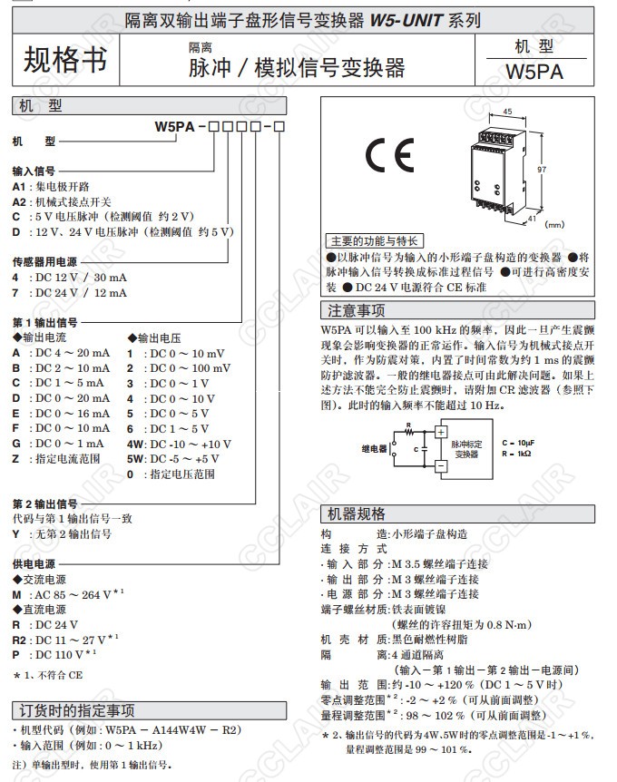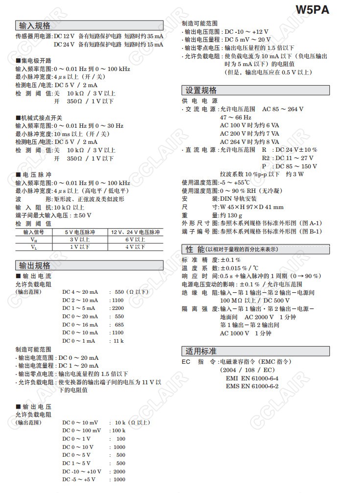 W5PA,W5PA-A144W4W-R2,W5PA-A1,W5PA-A2,W5PA-C,W5PA-D,脈沖/模擬信號變換器(隔離)