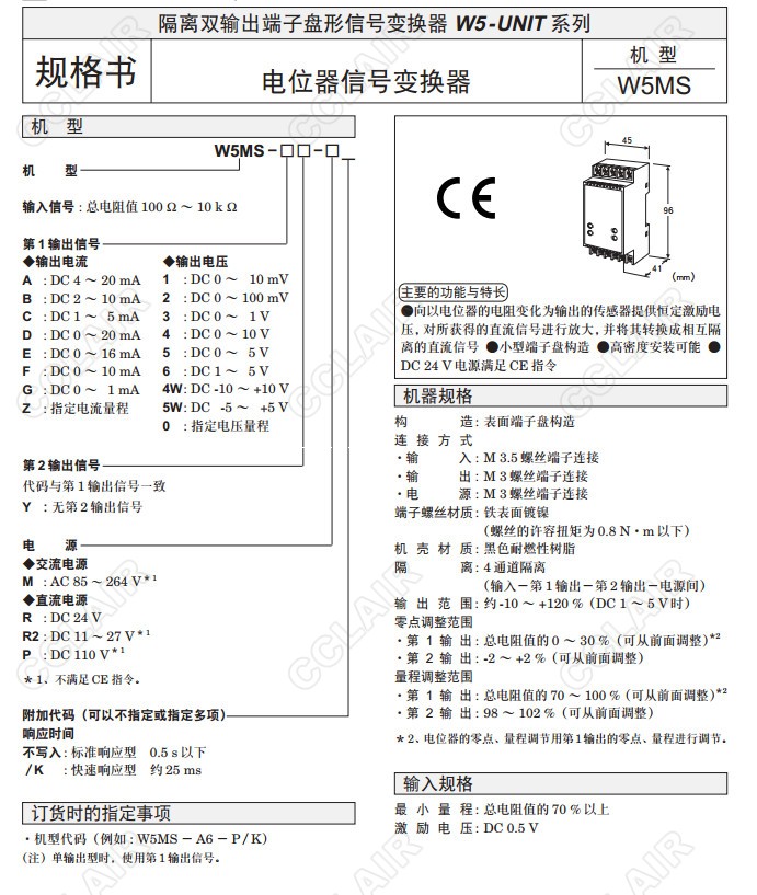W5MS,W5MS-A6-P/K,W5MS-AA,W5MS-AB,W5MS-AC,W5MS-AD,W5MS-AE電位器信號變換器,W5MS-AF,W5MS-AG,W5MS-AZ,W5MS-A1,W5MS-A2,W5MS-A3,W5MS-A4,W5MS-A5,W5MS-A6,W5MS-A4W,W5MS-A5E,W5MS-A0,