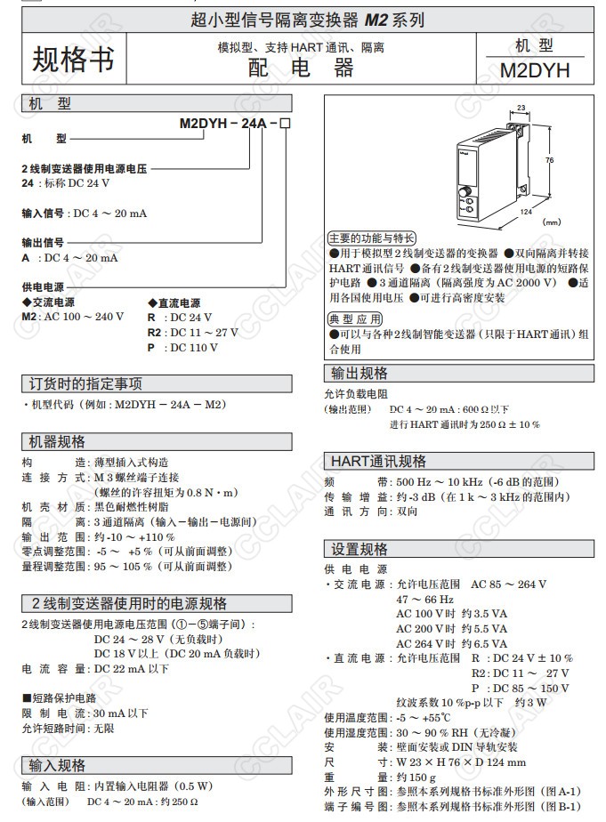 M2DYH,M2DYH-24A-M2,M2DYH-24A-R,M2DYH-24A-R2,M2DYH-24A-P,配電器(模擬 型、支持HART通訊、隔離)