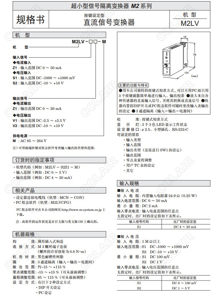 M2LV,M2LV-Z1 Z1,M2LV-Z1 V1,M2LV-Z1 V2,M2LV-S1 Z1,M2LV-S1 V1,M2LV-S2 V2,直流輸入信號變換器