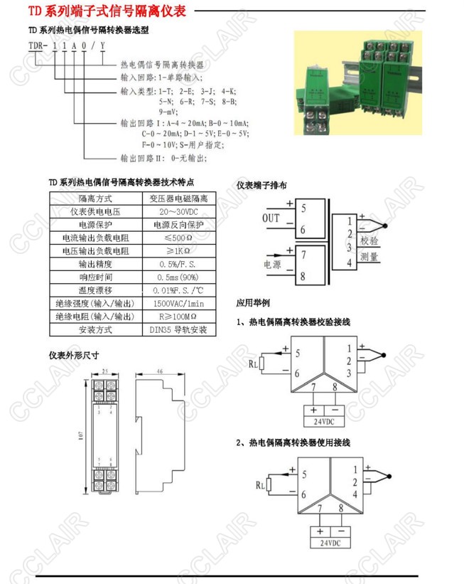 TDR-11A0/Y,TDR-12A0/Y,TDR-13A0/Y,TDR-14A0/Y,TDR-15A0/Y,熱電偶隔離轉(zhuǎn)換器
