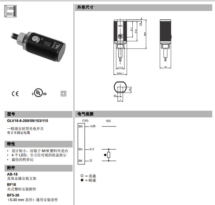 GLV18-8-200/59/103/115,漫反射型傳感器
