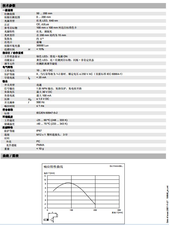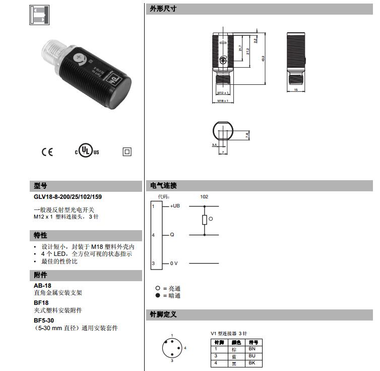 GLV18-8-200/25/102/159,漫反射型傳感器