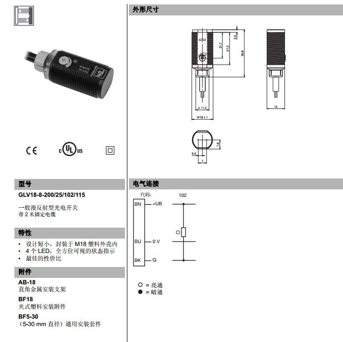 GLV18-8-200/25/102/115,漫反射型傳感器