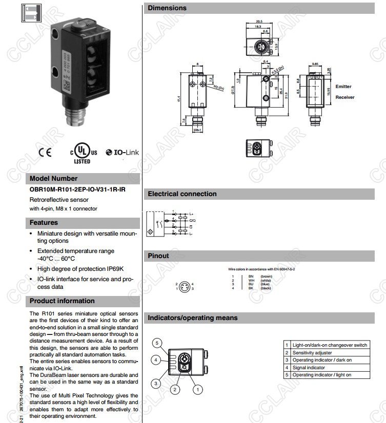 OBR10M-R101-2EP-IO-V31-1R-IR,反射板型